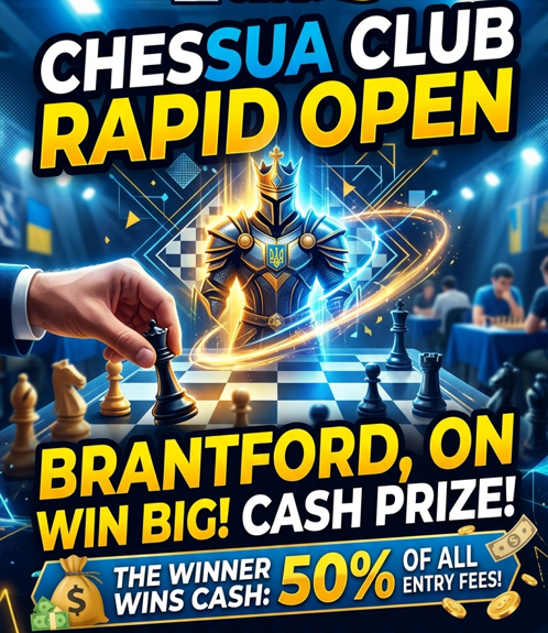 Hey, guys! Great news! We will play ChessUA Club Rapid Open on Sunday at 3.30 pm. Everyone is welcome! CFC ID is required. This time, the champion will take home a cash prize - 50% of all entry fees. Book your seat here: https://forms.gle/vtjiRWER3ELjuEaD6
