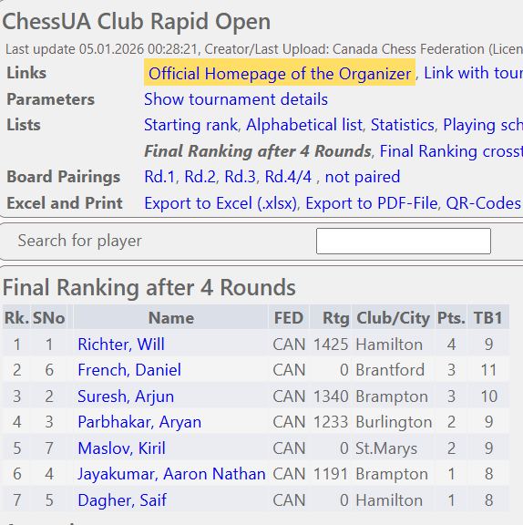 ChessUA Club Rapid Open was held for the first time in Brantford!