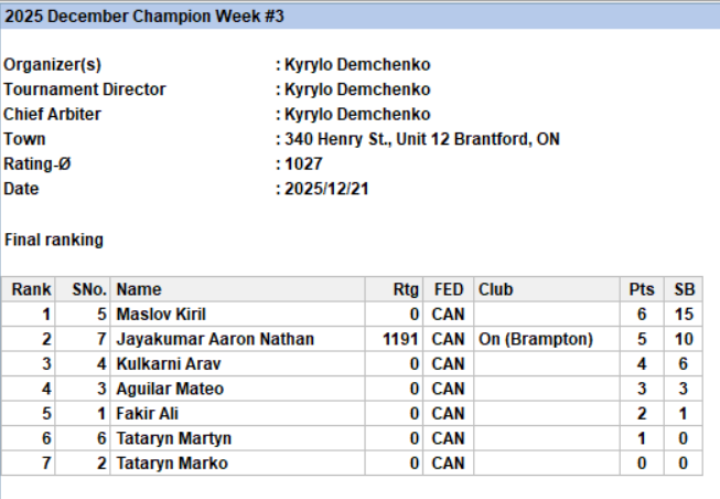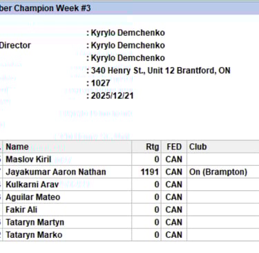 The next CYCC qualifier will be on January 4 at 3.30 pm at the ChessUA Club in Brantford!
